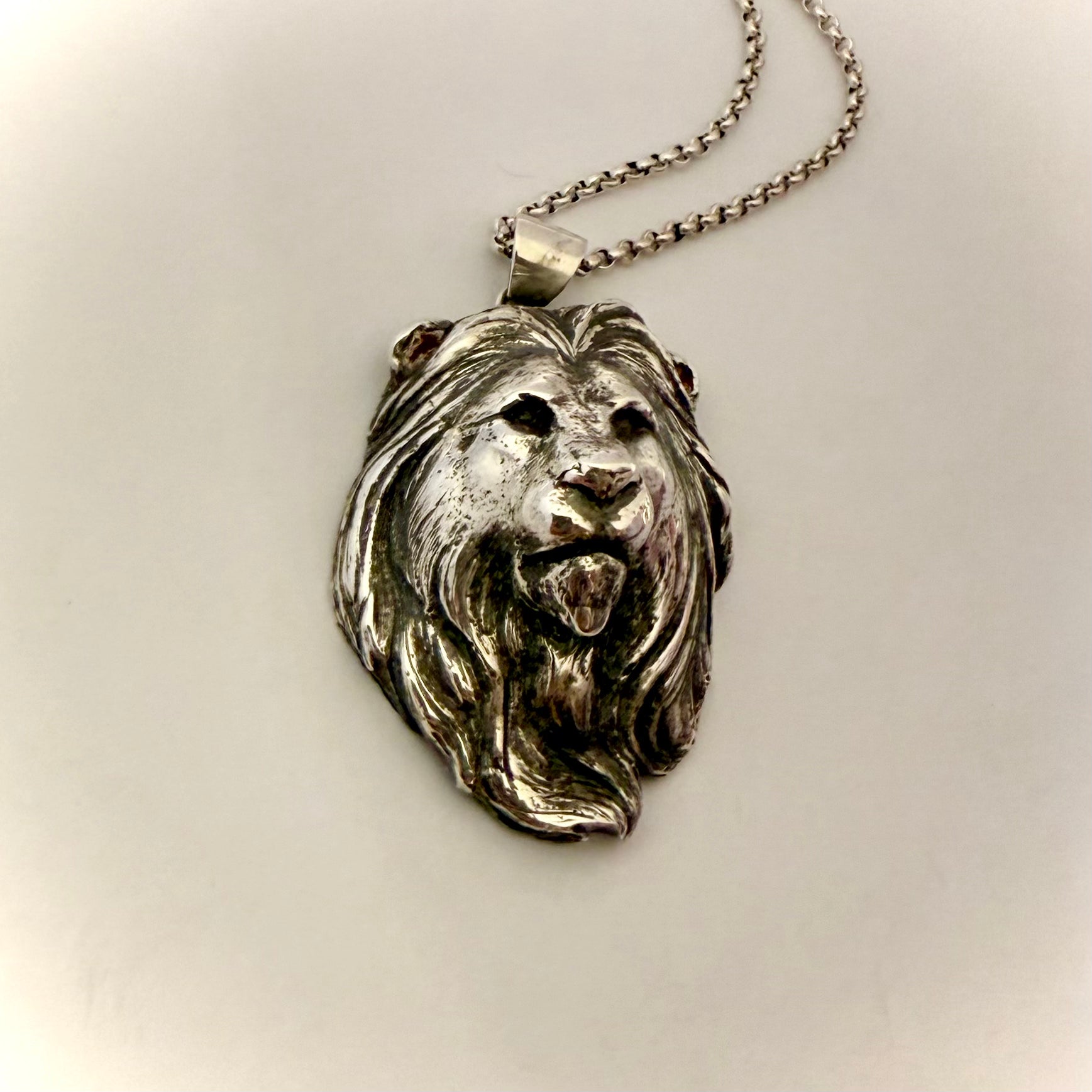 Hand sculpted Lion Head pendant, cast in 925 Sterling Silver,