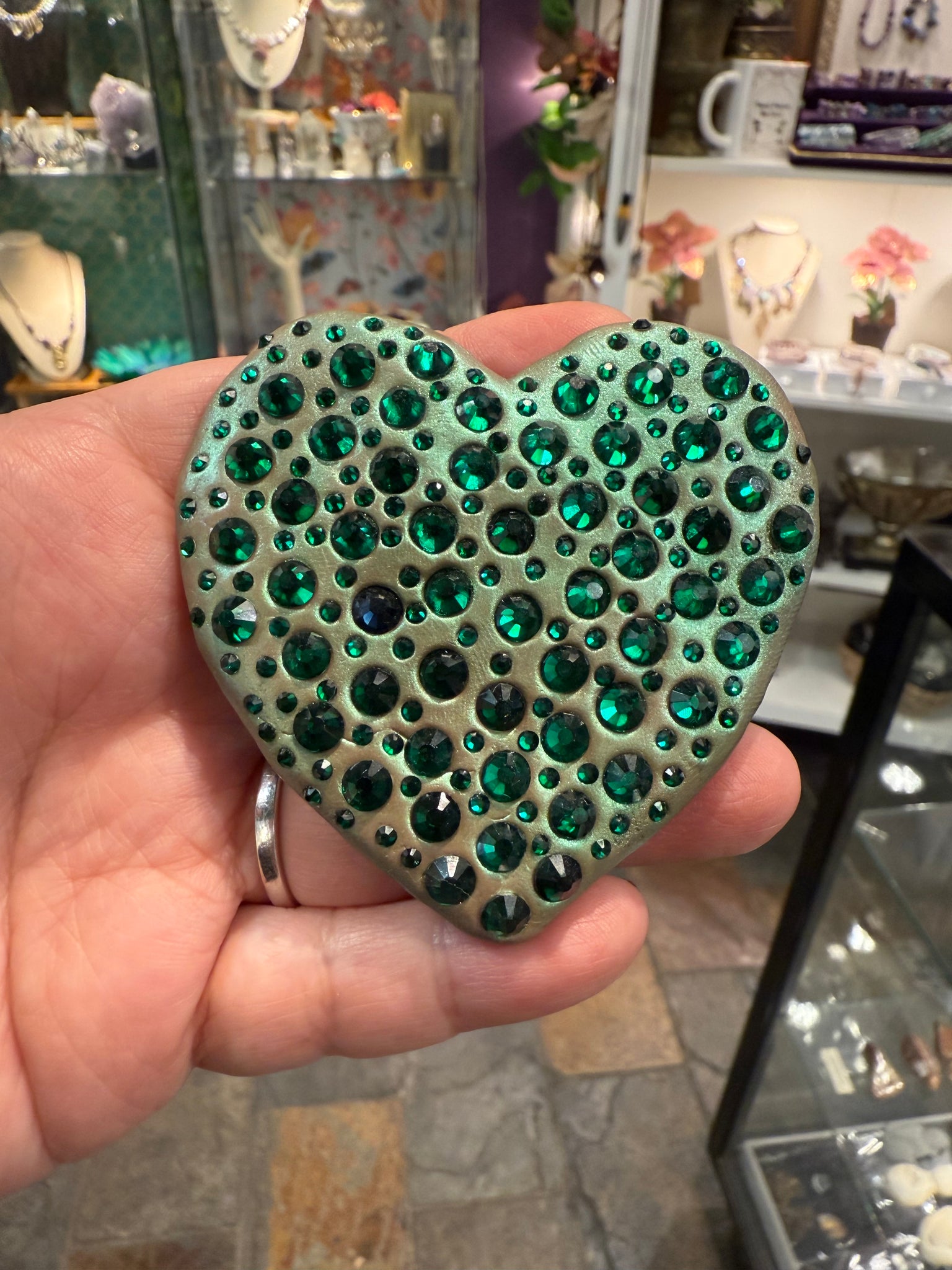 Hand sculpted and made with emerald green Rhinestones!
